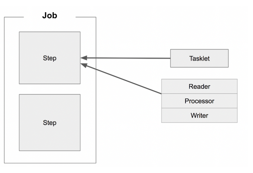 Job 안에는 여러 Step이 존재하고, Step 안에 Tasklet 혹은 Reader & Processor & Writer 묶음이 존재