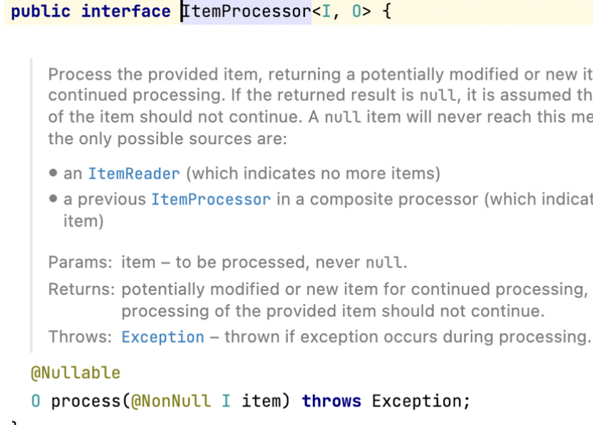 - 따라서 ItemProcessor를 익명 클래스 혹은 람다식으로 자주 사용한다.